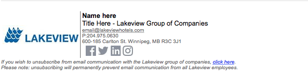 In an effort to provide a uniform, professional look for all Lakeview email correspondence, strict adherence to the standards below is required. Please do not modify anything in these styles except for your own information where applicable.
